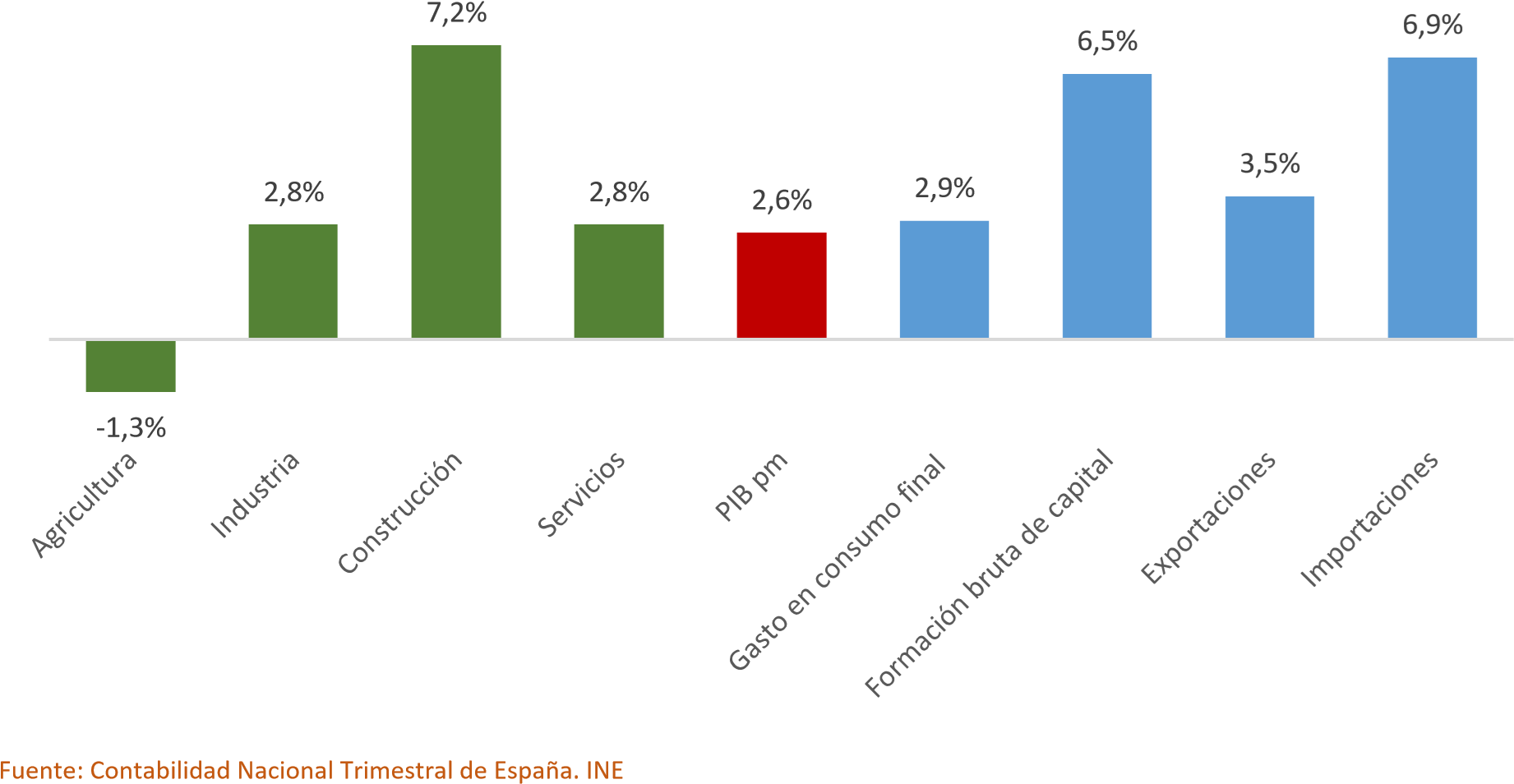 Variación interanual del PIB nacional (en volumen). Cuarto trimestre de 2025