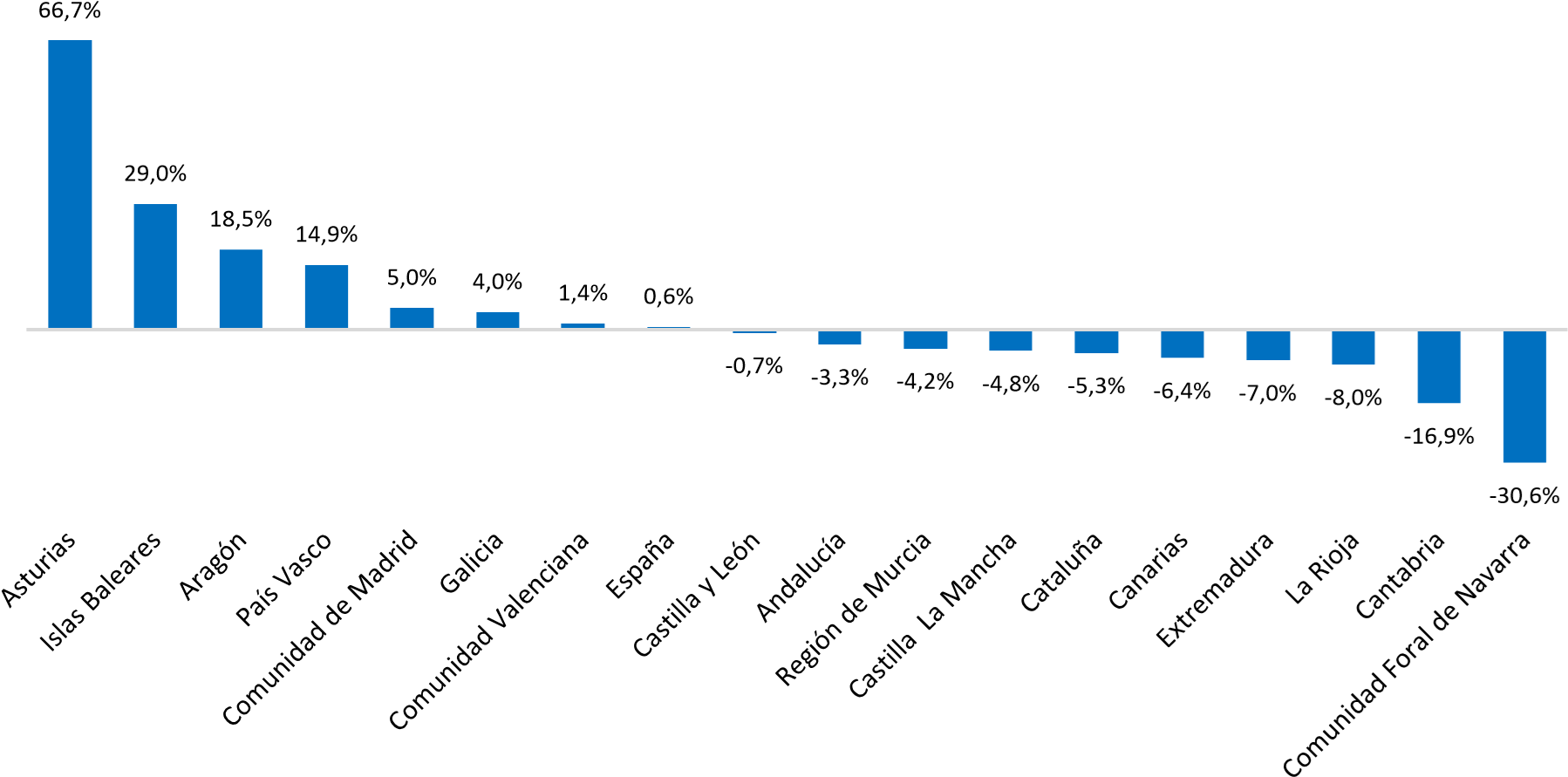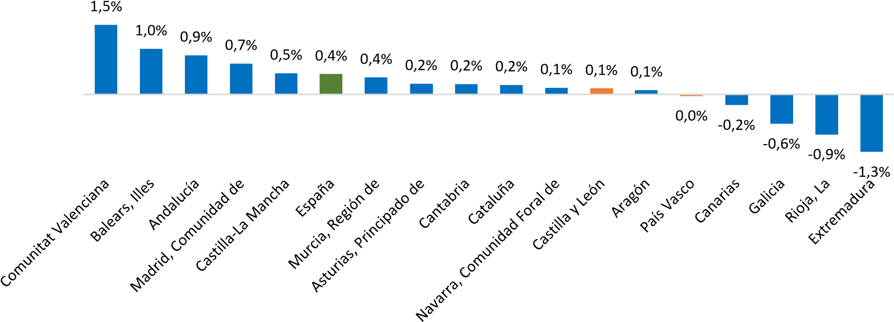 Variación interanual del PIB por comunidades autónomas. Cuarto trimestre de 2025