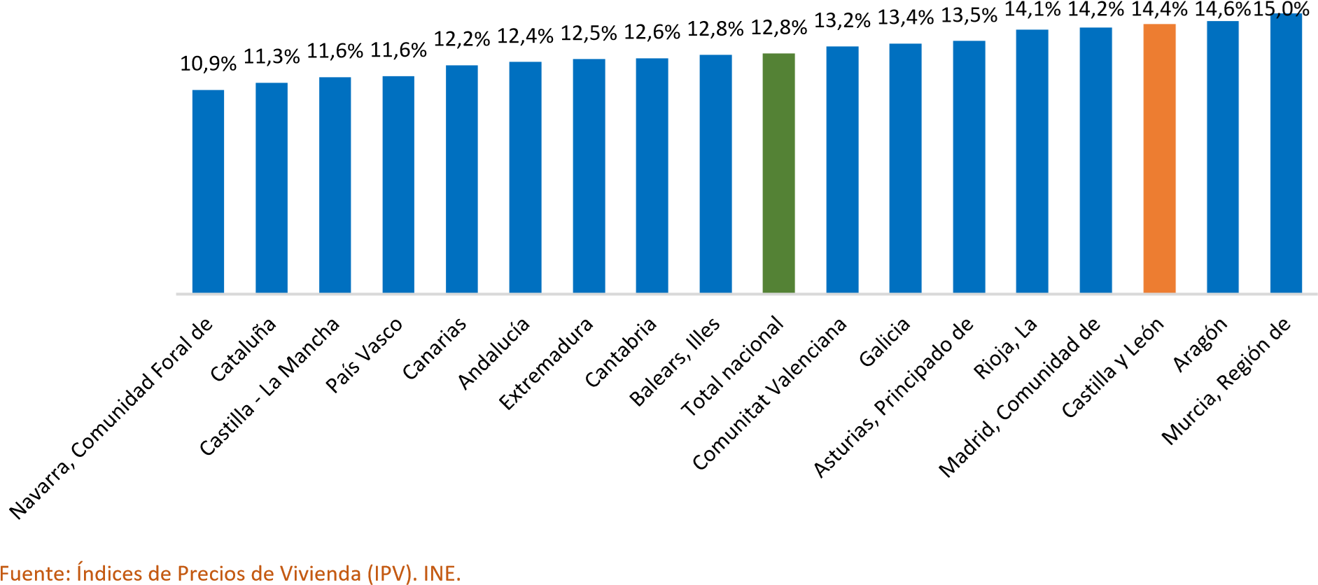 Variación anual del precio de la vivienda por Comunidades Autónomas. Tercer trimestre de 2025