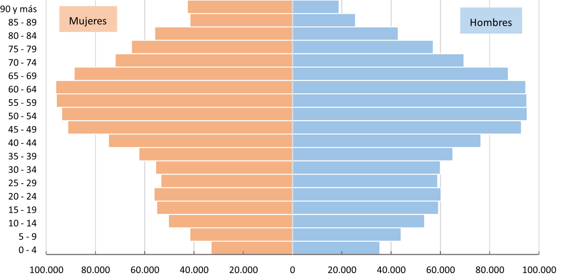 Pirámide de la población de Castilla y León. Diciembre de 2025