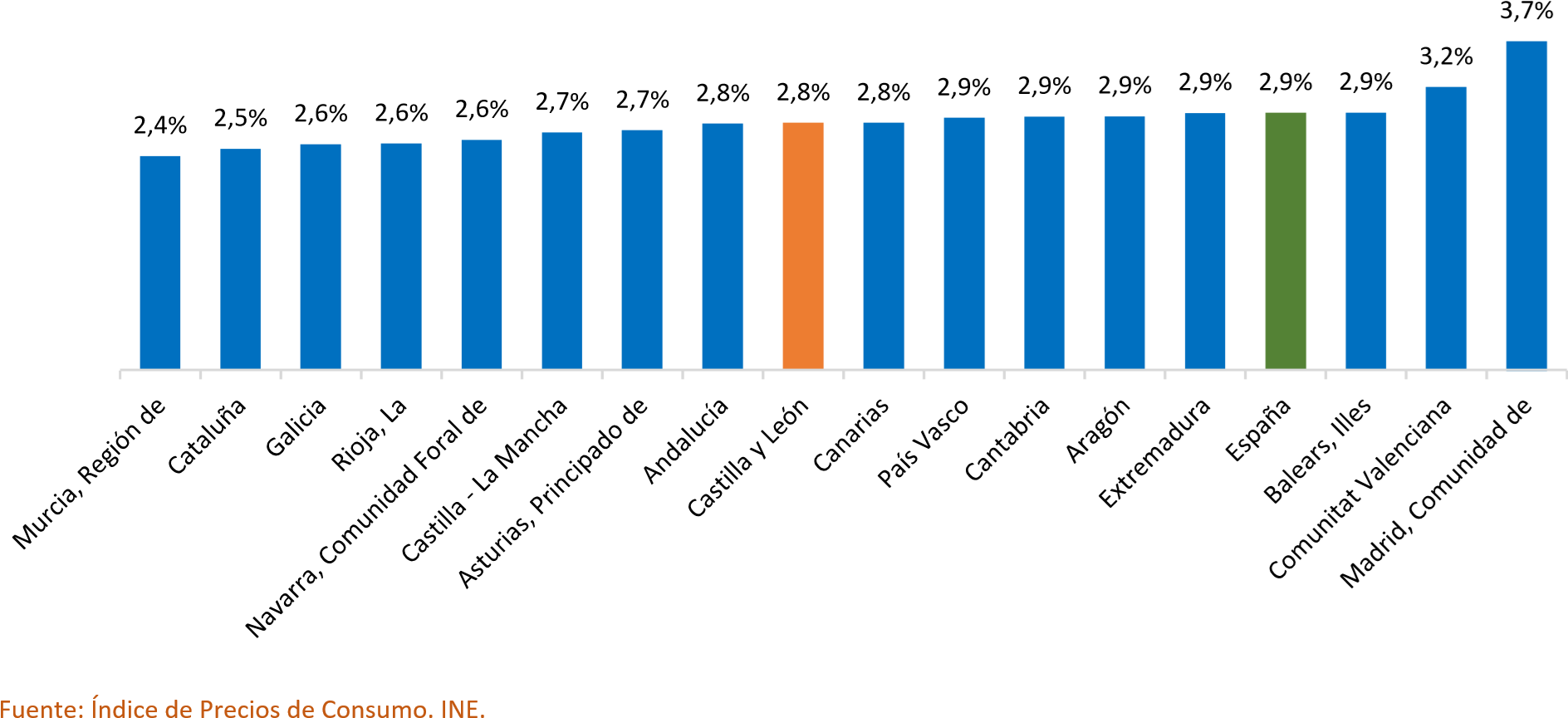 Variación interanual del IPC por comunidades autónomas. Diciembre de 2025