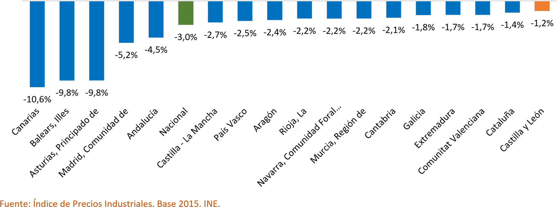 Variación anual de los precios industriales por comunidades autónomas. Diciembre de 2025