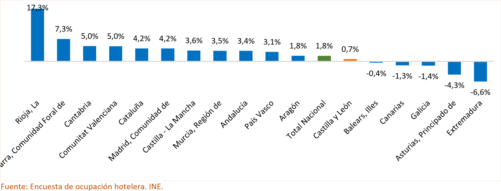 Variación anual del número de pernoctaciones totales por comunidades autónomas. Cuarto trimestre de 2025